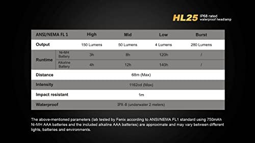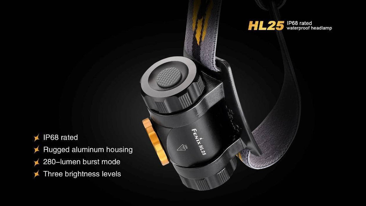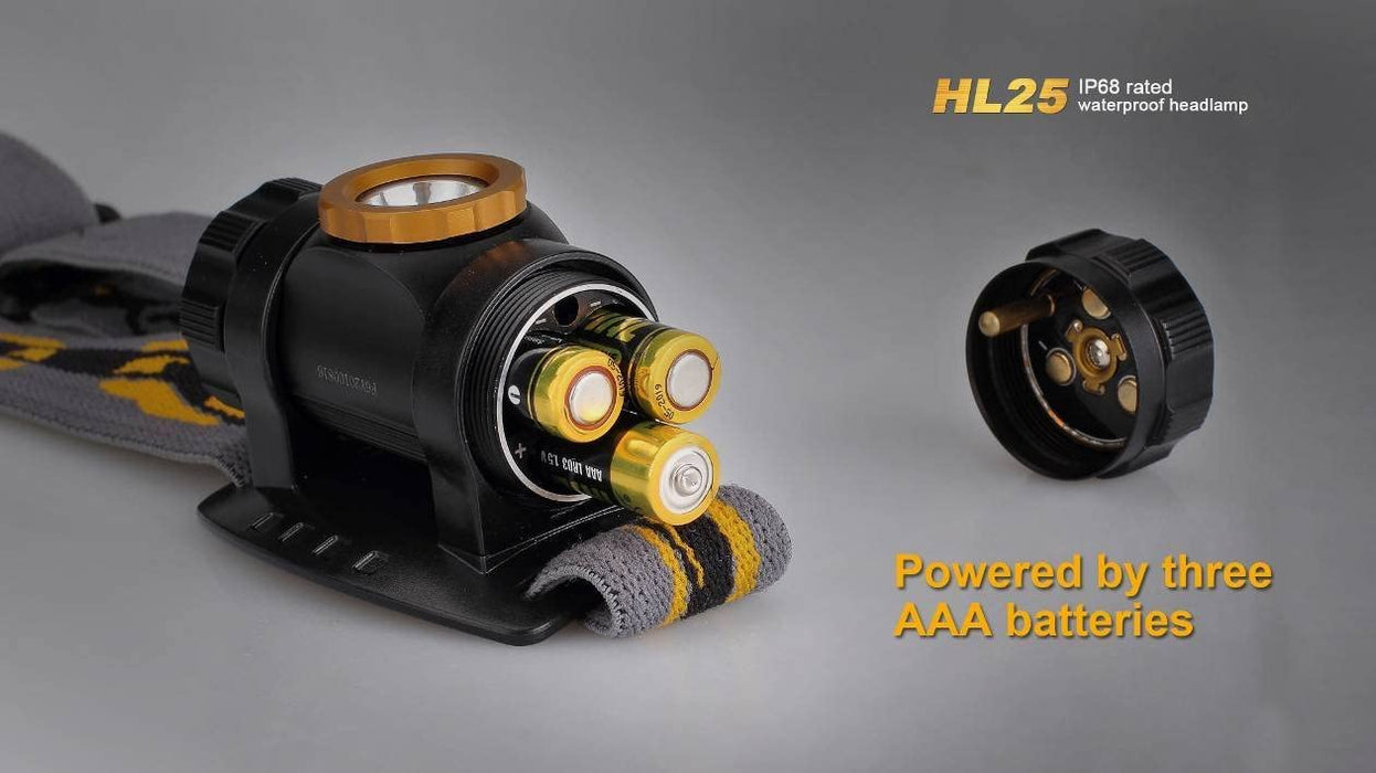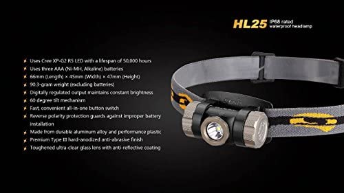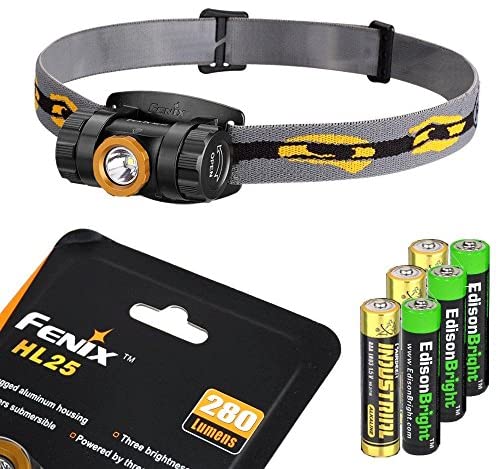 Fenix HL25 280 Lumen Light Weight CREE XP-G2 R5 LED Headlamp (Champagne Gold Color) with 3 X EdisonBright AAA Alkaline Batteries Bundle