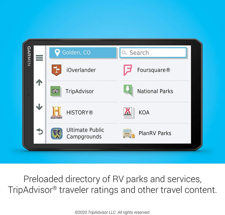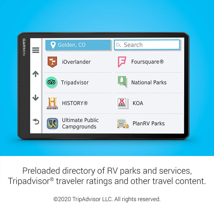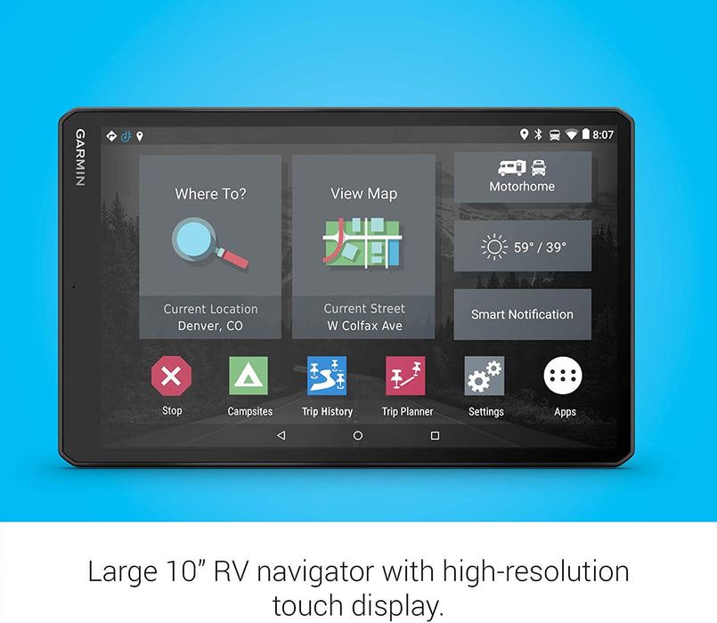 - Large 8" RV navigator with high-resolution touch display and options for portrait and landscape mode