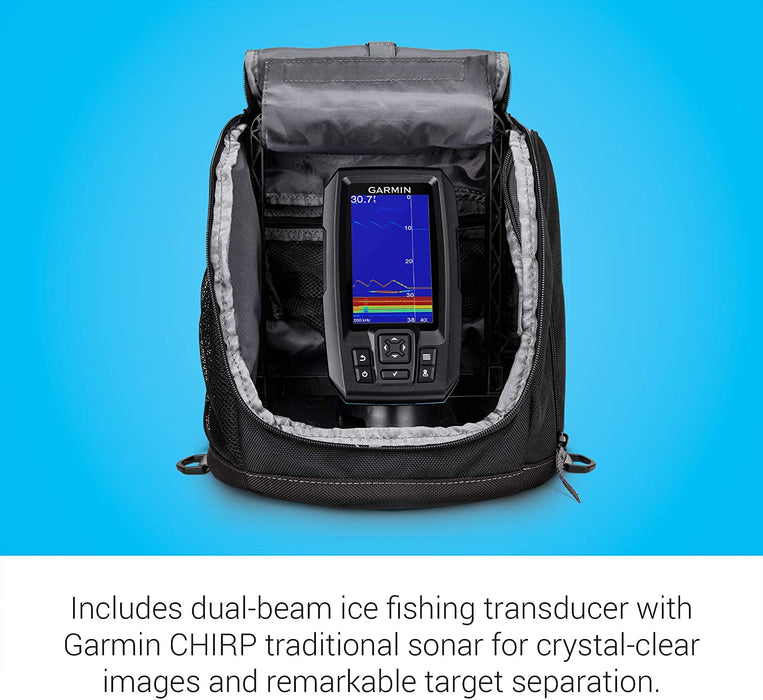 - Includes dual-beam ice fishing transducer with Garmin CHIRP traditional sonar for crystal-clear images and remarkable target separation
