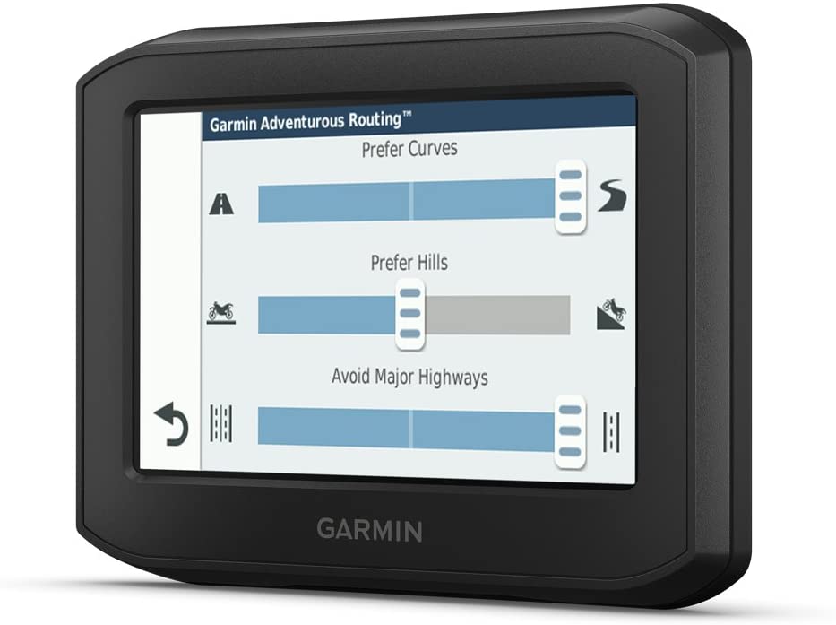 • Garmin Adventurous Routing finds curvy or hilly roads; limits major highways