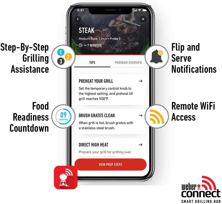 - Select doneness (medium-rare steak) and receive alerts when ready
