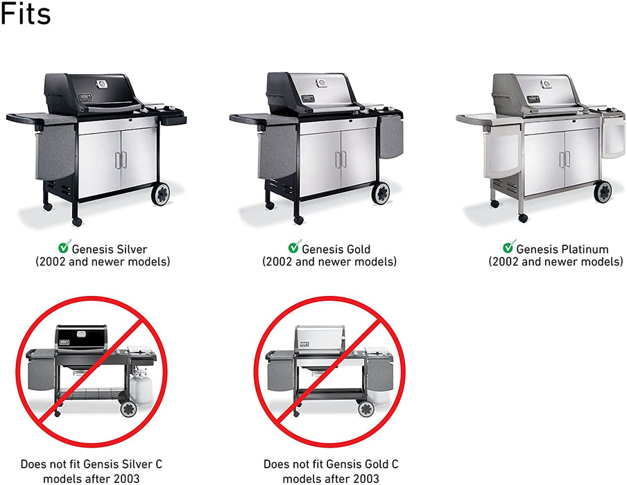 - Fits Genesis Silver/Gold/Platinum gas grills (2002 and newer) and Spirit 200/300 2007-2008 gas grill models