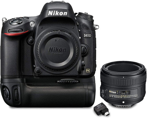 NikonKit contains D610 body NIKKOR AF-S NIKKOR 50mm f/1 8G mb-d14 battery grip WU-1b wireless mobile adapter
