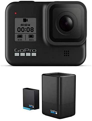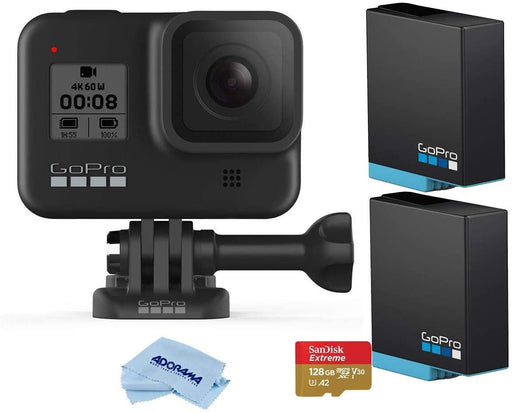 GoPro HERO8 Black, Waterproof Digital Sports and Action Camera with Touch Screen 4K UHD Video 12MP Photos, Essential Bundle with 2 Extra Batteries, 128GB microSD Card, Cleaning Cloth