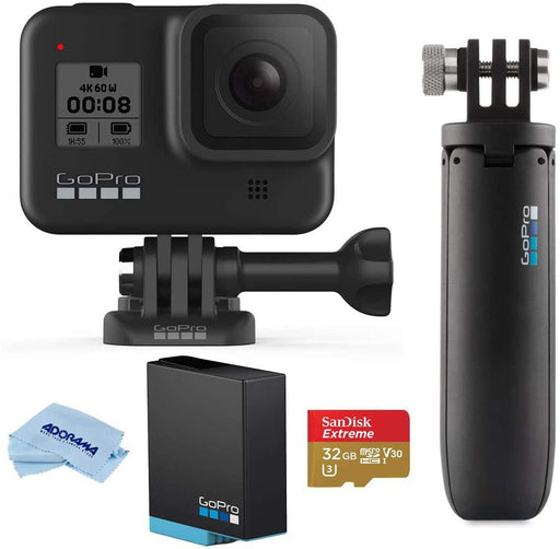 GoPro HERO8 Black, Waterproof Action Camera with Touch Screen 4K UHD Video 12MP Photos, Bundle with GoPro Shorty Mini Extension Pole/Tripod, Battery, 32GB microSD Card, Microfiber Cloth