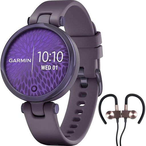 Garmin 010-02384-02 Lily Sport Edition, Midnight Orchid Bezel with Deep Orchid Case & Silicone Band Bundle with Deco Gear Magnetic Wireless Sport Earbuds
