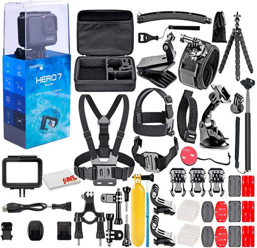 GoPro - HERO7 Silver 4K Waterproof Action Camera - with 50 Piece Accessory Kit - Touch Screen 4K HD Video - 10MP Photos - Live Streaming Stabilization - Silver - Loaded Bundle