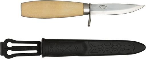 MoraknivWoodcarving knife designed for the beginning wood carver Thin carbon steel blade with finger protection guard Oiled Birchwood handle Includes a pl...