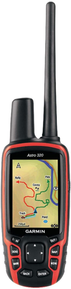 Premier Tracking System for Sporting Dogs 9-mile range with steel VHF antenna attached to a DC™ 50 (shorter antenna included for smaller dogs) 20% more battery life when updated Astro 320 is paired with DC 50, plus battery preserving rescue mode Track up to 10 dogs at a time (with purchase of additional dog devices) Top-mounted, high-sensitivity GPS and GLONASS Advanced mapping with optional BirdsEye Satellite Imagery and TOPO maps The unique Astro 320 dog tracking system pinpoints your dog's position and shows you exactly where he is on a vivid color screen, even when you can’t see or hear him. The Astro system has the features you've been asking for, such as increased range and battery life, more durable antenna, a simplified user interface and must-have mapping capability. See Your Dogs’ Every Move The Astro system includes the Astro 320 handheld and the rugged DC™ 50 transmitter collar¹ with an orange polyurethane strap (accessory color straps sold separately). DC 50 features top mounted GPS and GLONASS receivers and a newly-redesigned steel VHF antenna. Switching to rescue mode reduces the refresh rate in order to preserve battery life, giving you more time to look for a lost dog. Plus, Collar Lock creates a 4-digit PIN number that helps prevent others from seeing your dog’s whereabouts — a useful feature in field trials to ensure that an Astro is used only as a recovery tool when a dog in competition becomes lost. Bark Detection lets you know your dog is barking even if it’s out of audible range, a crucial feature for treeing hounds or running hounds that cover a lot of ground, even in heavy cover. Improvements to the Astro The intuitive and easy-to-use Astro system takes dog tracking to an entirely new level with new software for the 320 which supports the DC 50 dog device and adds new features, such as bark detection. The interface streamlines what is displayed by allowing dogs that are outside the current zoom level to have their location notated in the display’s margin. You can also choose the amount of each dog’s tracklog displayed, or toggle it off completely, to avoid cluttering the map. The Astro 320, compatible with any DC-series transmitter, also has enhanced map drawing capabilities, BirdsEye Satellite Imagery compatibility (subscription required), vibration-based alerts and a 3-axis electronic compass. Both durable and waterproof, the Astro 320 system features the legendary toughness that’s built to withstand the elements, whether it’s dust, dirt, humidity or water. Nothing is a match for this essential hunting companion. Upgrade with Ease Getting what you need for the hunt is now a little easier. You can purchase the entire Astro bundle or as many DC 50 collars as you need. And your 320 is compatible with every DC series dog collar. The DC 50 is our only dog device with remote bark detection and improved battery life (including battery preserving rescue mode). The improved battery life means when you set your update rate to every 5 seconds the battery lasts 26 hours. In rescue mode, the battery lasts 54 hours, giving you more time to find your lost dog. Additional Mapping Astro 320 has a microSD™ card slot so you can load TOPO U.S. 24K maps for land elevation contours or City Navigator NT® map data for turn-by-turn routing on roads. Astro 320 also supports BirdsEye Satellite Imagery (subscription required), that so you can download satellite images to your device and integrate them with your maps. Mapping depicts important nearby geographical features and lets you know if your dog has crossed a creek or is nearing a dangerous road. Astro 320 is also compatible with Garmin Custom Maps, free software that transforms paper and electronic maps into downloadable maps for your device. Track Dogs in Dense Cover As often as every 5 seconds, your dog’s DC 50 transmits his position to your handheld, and you can see his current location and a trail of where he’s been on the map page of your handheld. Switch over to the Dog Tracker page to view a compass pointing to your dog’s location as well as his current status: whether he’s running, sitting, on point or treeing quarry. Astro also can let you know when your dog is barking, even if he’s out of audible range. You can also see each dog’s precise distance on the map page, and you can choose to auto zoom the map so all dogs can be seen on the display at any time. Dogs that are too far away to fit on the map’s current zoom scale can be notated on the display’s margin in the direction of the dog’s location. You can also choose the duration that each dog’s tracklog is viewed on the display, or toggle it off completely. Astro boasts a high-sensitivity GPS and GLONASS receiver which is mounted to the top of the collar so that can track your dog’s position even in heavy tree cover or deep canyons. You can track up to 10 dogs at one time with Astro, from up to 9 miles away (depending on terrain). The system transmits information by line-of-sight, so it reaches farthest in flat, open territory. Count Your Coveys After you’ve captured your quarry, mark the exact spot with Astro’s Covey Counter™, a special waypoint that tells you the exact location, time of day and elevation where you found your prey, as well as the number of birds you flushed and took from that location. Astro lets you save other special waypoints, such as “Truck” and “Lodge,” so you can save the location of these places quickly and easily for each hunt. Astro also offers special waypoint icons to represent food plots, tree stands and other hunting-related points. Plan Your Next Trip Take charge of your next adventure with BaseCamp, software that lets you view and organize maps, waypoints, routes, and tracks. This free trip-planning software even allows you to create Garmin Adventures that you can share with friends, family or fellow explorers. BaseCamp displays topographic map data in 2-D or 3-D on your computer