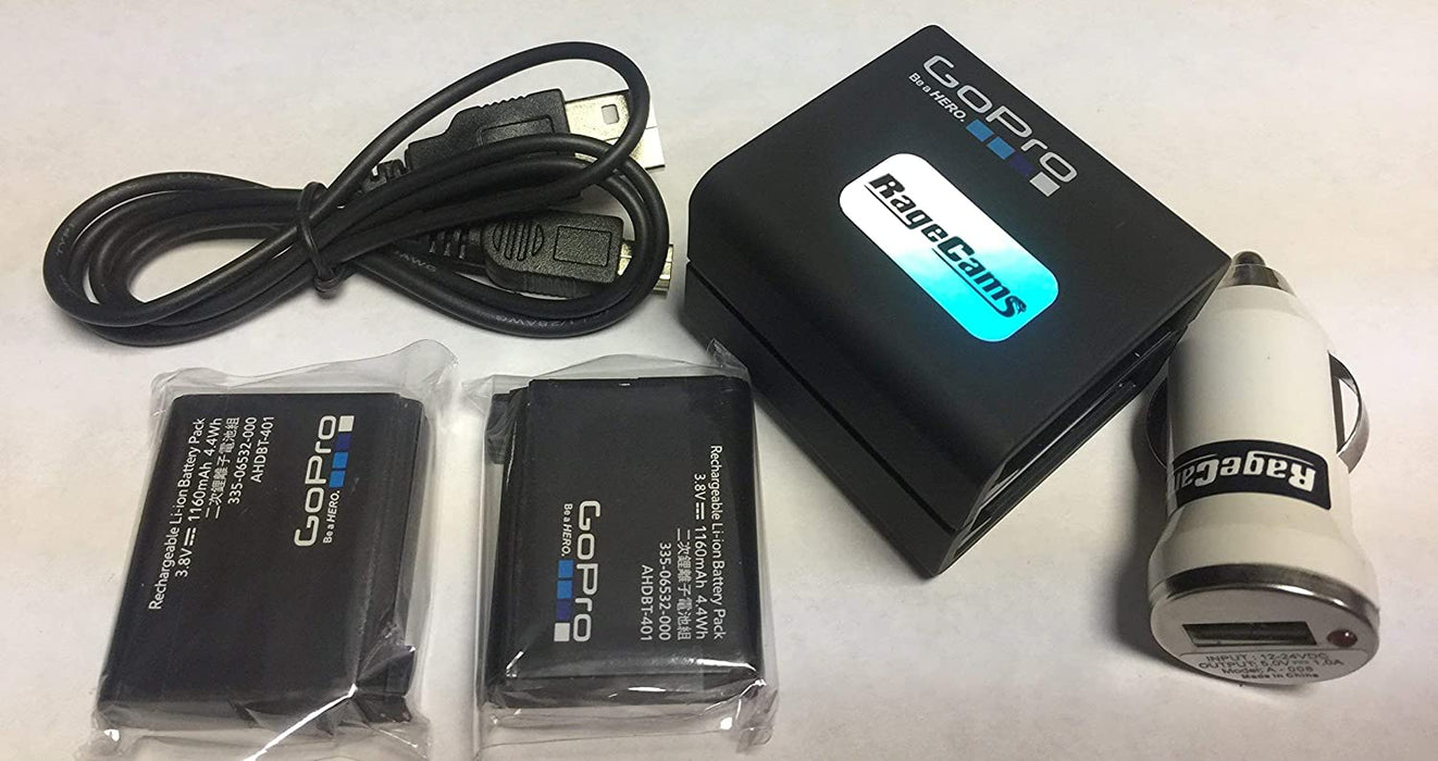 - This Kit Includes 2 GoPro Rechargeable Battery for Hero$ With GoPro Dual USB Battery Charger for GoPro Hero4 Bacl Silver Batteries