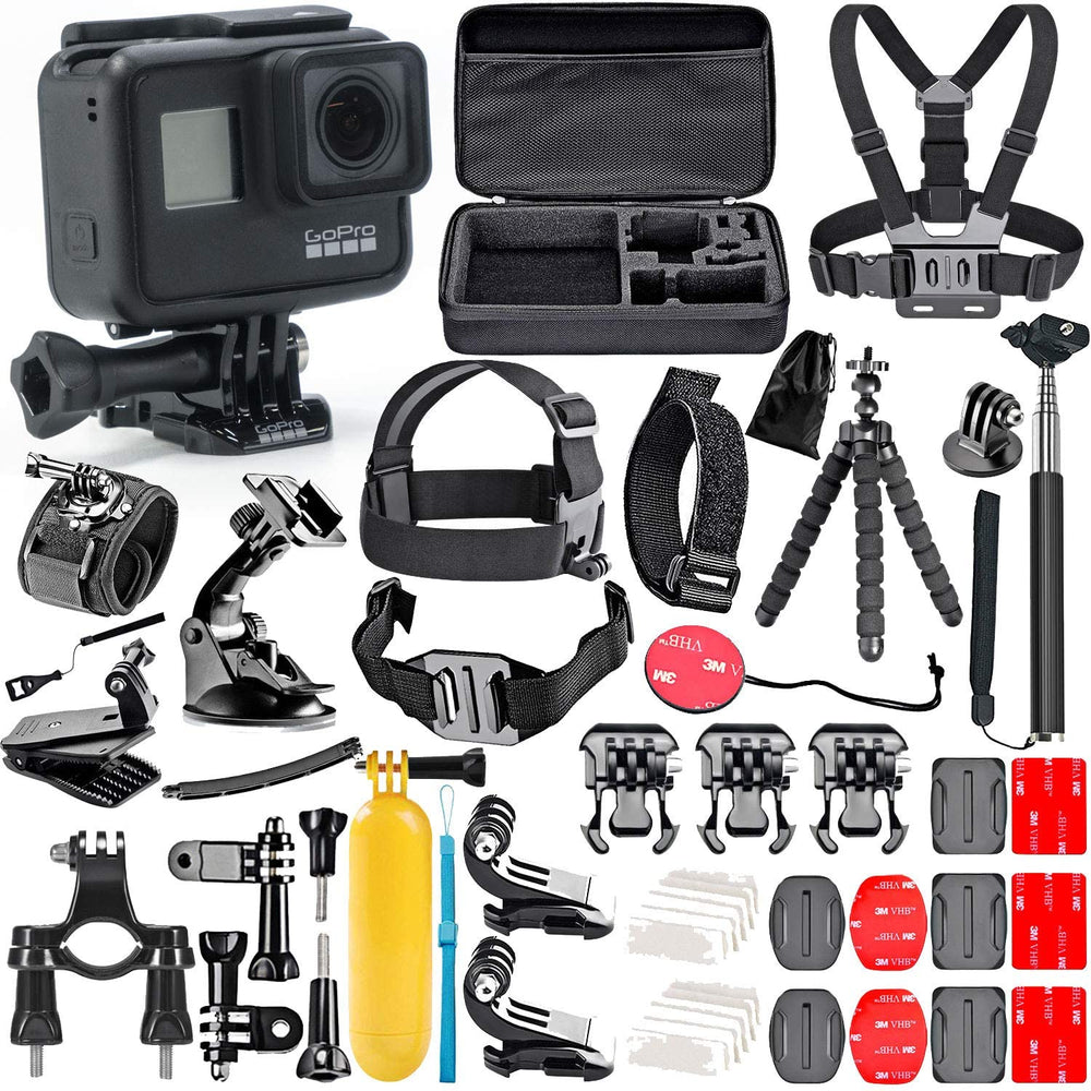 GoPro Hero 7 Black with 50 Piece Action Accessory Kit - Straps - Harnesses - Mounts - Adapters All-in-One Bundle