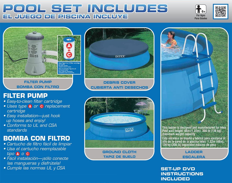 Intex 15ft X 48in Easy Set Pool Set with Filter Pump, Ladder, Ground Cloth & Pool Cover