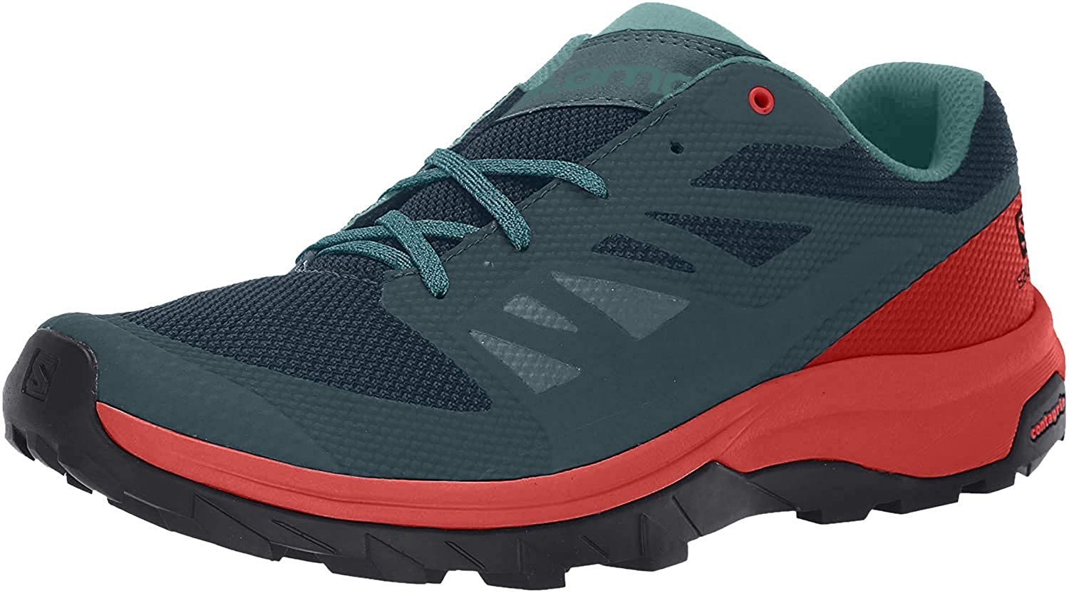 Salomon Men's Outline GTX Waterproof Multi-Function Hiking Shoe, Reflecting Pond/High Risk Red/Deep Lake, 9.5 M US