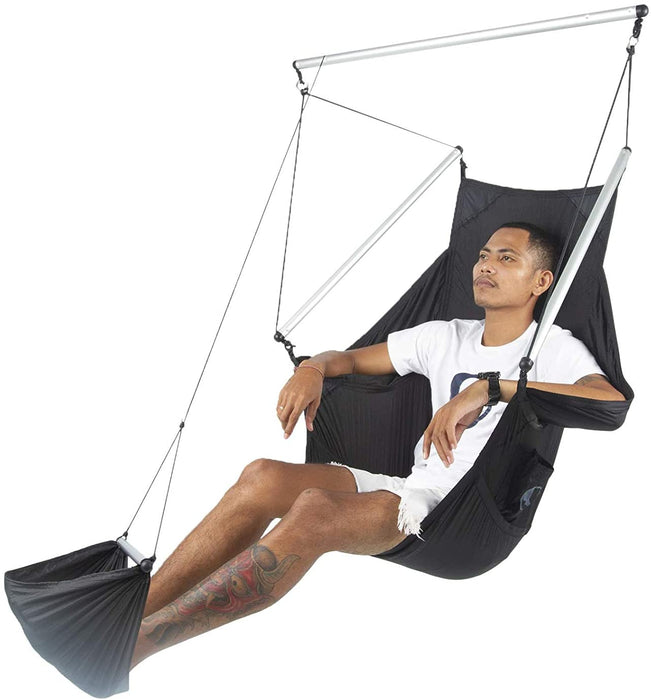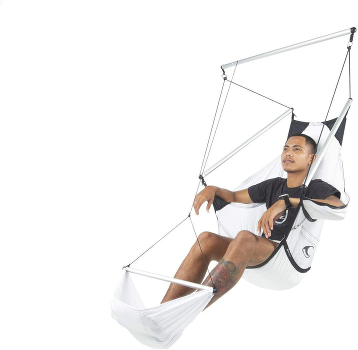 - LIGHTWEIGHT, COMFORTABLE, COMPACT - Instantly relieve the stresses of the day? A single anchor point is all it takes to quickly and intuitively hang this flexible, yet robust indoor and outdoor seating option. Easily individualize the sitting posture with only minor adjustments (add pillows or change position of metal rings, etc.). For an even smaller version (and ingenious swing chair) for little children that fit into a backpack, check out our Mini Moonchair.