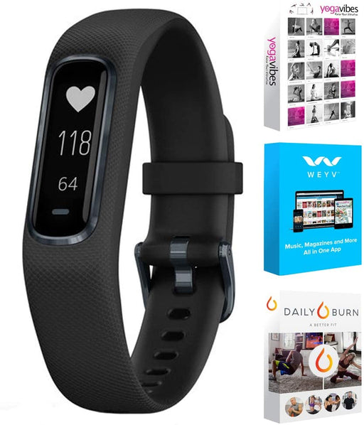 Garmin Vivosmart 4 Activity & Fitness Tracker Black with Midnight Hardware (S/M) (010-01995-10) with Tech Smart USA Fitness & Wellness Suite