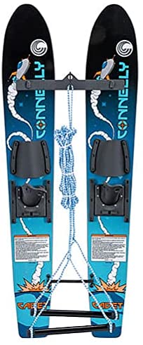 • Reinforced composite construction C.T.S. (Connelly Tracking System) High gloss UV coat Removable stabilizer bar with rear strap Cadet rope with boat-side safety handle Child Slide-Type Adjustable Glass filled nylon Size: 2 x 45" / 115cm Skier Weight: Up to 80lbs Foot Size: 1-4