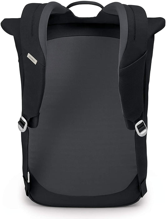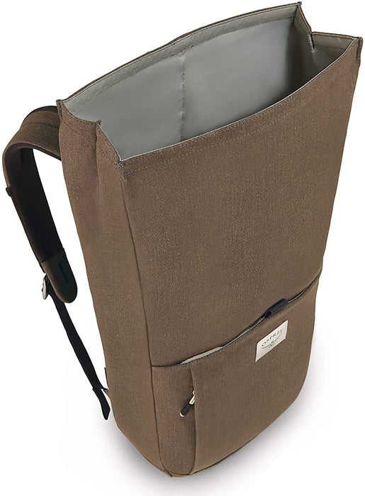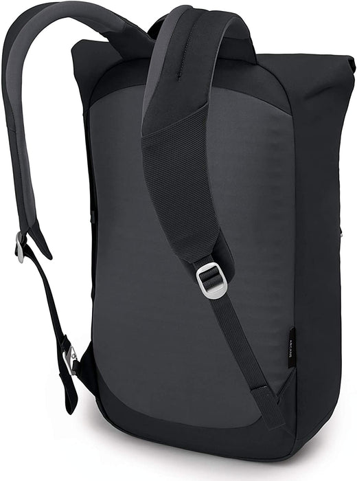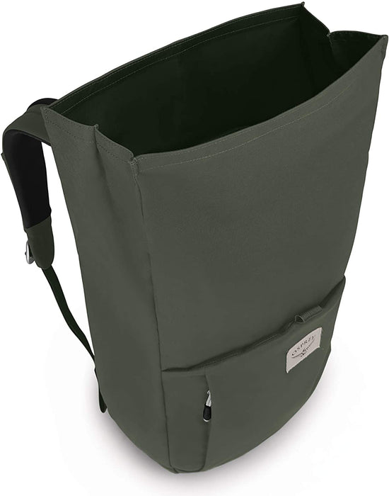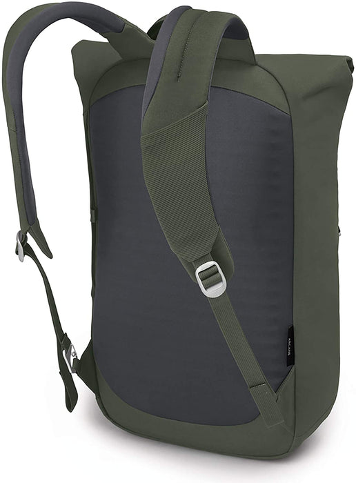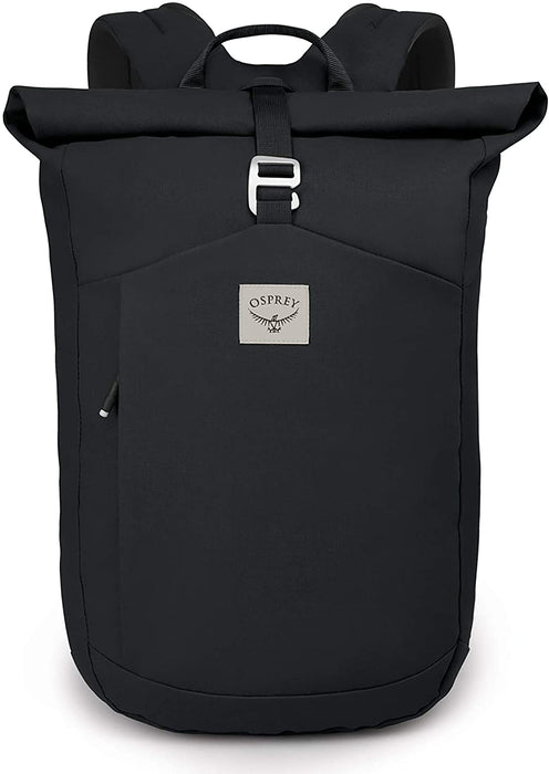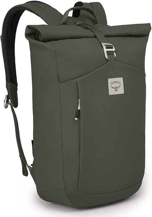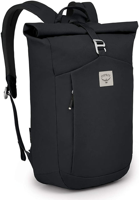 • Roll top style main compartment opening with webbing and aluminum buckle closure