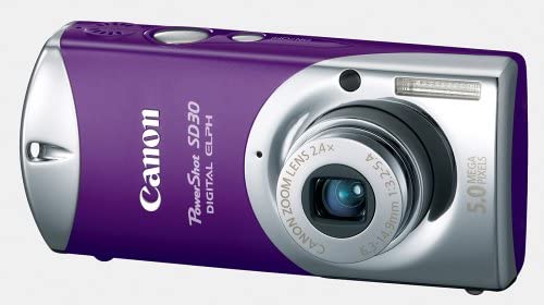 The Powershot SD30 includes a 2.4x optical zoom and embraces Canon's perpetual curve design. The sleek and compact Powershot SD30 comes with 5.0-megapixel resolution and DIGIC II processing for high image quality and a USB 2.0 Hi-Speed interface for fast transfer speeds. The supplied Camera Station allows for easy connectivity to the PC, printer, and television--perfect for viewing contemporary slide shows created by the camera. The Camera Station also charges the camera when docked. The Powershot SD30 is available in an array of striking colors: Tuxedo Black, Glamour Gold, Rockstar Red, and Vivacious Violet. A silky finish completes the look and feel of this ultimate digital accessory. Sleek, stylish, better A first for Powershot cameras, the Powershot SD30 now features a 2.4x (f3.2-f5.4) optical zoom, with a high contrast Ultra High Refractive Index Aspherical lens for sharp results in a slim package. When combined with digital zoom, the Powershot SD30 delivers 10x magnification. The Powershot SD30's 5.0-megapixel sensor delivers the image quality required for printing up to 13 x 17-inch photo-quality prints. The new focusing system is both faster and more power efficient, making the auto focus more responsive and helping to extend the number of shots possible before charging the battery. The Powershot SD30 maintains its small size whilst improving the user's shooting and reviewing experience with the larger 1.8-inch LCD monitor. Improvements in the user interface include larger animated icons and the addition of a world time zone display. The menu can also be displayed in 22 different languages. A clever Camera Station For fast and convenient charging, printing, downloading and connection to televisions and home cinema systems, the Powershot SD30 comes complete with a Camera Station (CS-DC1). The station acts as a dock, or cradle, for the camera, ensuring quick and easy connectivity without having to attach and reattach multiple cables. The supplied wireless controller allows the docked camera's playback to be operated remotely. This allows the new slideshow and playback features on the Powershot SD30 to be controlled from the comfort from the user's sofa when sharing photos and movies on television screens. When connected to both a direct printer and TV, users can view their images and use the print menu on screen to edit then print. Advanced technology The DIGIC II processor ensures that the images recorded have superb color quality, as well as giving the camera improved performance overall. iSAPS technology assesses the scene and adjusts the camera settings to achieve the optimum results. For rapid transfer of images, the Powershot SD30 utilises a USB 2.0 Hi-Speed interface. Shooting modes and special effects The Powershot SD30 features 9-point AiAF to keep even off-center subjects sharply in focus. With 16 different shooting modes, the camera's settings are optimized for a wide range of situations. A selection can be made from Auto, Manual, Macro, Portrait, Landscape, and Night Snapshot modes, or from the Scene Modes which now include an underwater setting, allowing users to take advantage of the optional All Weather Case (AW-DC40--waterproof to 3 meters). With the addition of My Colors, users of the Powershot SD30 can become more creative in their digital photography. Special effects such as Color Swap or Custom Colors can be performed in camera while shooting both stills and movies. Previously, this level of image enhancement was only possible after downloading to a PC, and using specialized software. Intelligent Orientation Sensor The Powershot SD30 incorporates an Intelligent Orientation Sensor that automatically rotates images for review, regardless of the orientation of the camera. The sensor also activates the FUNC/SET button at the rear of the camera to act as the shutter release when it detects that the camera is in the vertical orientation. This allows the operator to shoot stills in portrait orientation, using one hand, whilst maintaining camera balance. More than just photos Users can record movies with sound up to 1 GB or 60 minutes long, whichever is reached first. Digital zoom can be used whilst shooting. As well as being able to select from VGA and QVGA (at 10 frames per second and 20 frames per second, respectively), the Compact Movie mode (QQVGA/15 frames per second) is designed to make sharing movies via e-mail as simple as possible. Printing images When used in combination with Canon's new Compact Photo Printer Selphy CP710 and Canon's Ink and Paper Set (KP-108IP), prints can be produced very inexpensively. With its optional Rechargeable Battery Pack (NB-CP2L), the Compact Photo Printer Selphy CP710 is highly portable, just like the compact Powershot SD30, making them ideal partners. Printing via a Selphy CP Compact Photo Printer also allows the user to print handy ID prints and movie prints. When connected to the latest range of PictBridge compatible PIXMA printers (also released today) image enhancement is possible with functions including Noise Reduction and Vivid Photo, as well as the new Face Brightener feature. Printing of images without having to connect to a PC is also made simpler via the Print/Share button, which also acts as an easy upload button for Windows XP and Mac OS X systems. Comprehensive software The Powershot SD30 comes bundled with the following Canon software: ZoomBrowser EX 5.5, PhotoRecord 2.2 (Windows), ImageBrowser 5.5 (Macintosh): For easy image download, storage, and retrieval, as well as management of image layout and printing. PhotoStitch 3.1: Creates stunning panoramas and can be used with Windows and Macintosh. Movie Edit Task: For easy editing and enhancement of movie footage recorded on the Powershot SD30 and easily accessed through ZoomBrowser and ImageBrowser. Also included is ArcSoft PhotoStudio photo manipulation software. Purchasers of the Powershot SD30 are eligible for membership of Canon iMAGE Gateway, which offers 100
