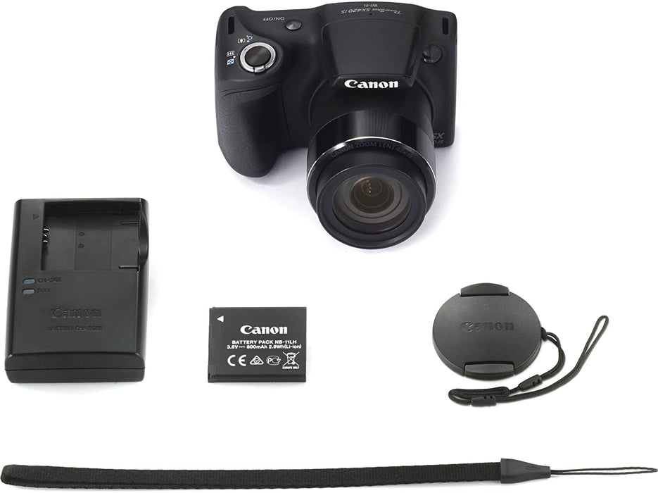 - Kit Includes: Canon PowerShot SX420 IS Digital Camera + NB-11LH Lithium-Ion Battery Pack + CB-2LF Battery Charger + Lens Cap + WS-DC12 Wrist Strap + Limited 1-Year Warranty (All these in Canon box)