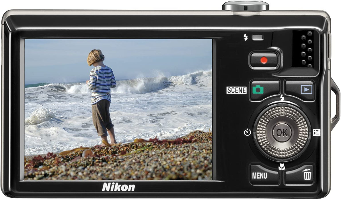 Nikon's compact, fast, and stylish Coolpix S6000 combines 14.2 effective megapixels with an incredible 7x optical Zoom-Nikkor ED glass lens for stunning prints as large as 20x30 inches. Take amazing movies with HD (720p) quality and an incredible, bright 2.7-inch LCD makes it easy to compose and share pictures and movies. The Coolpix S6000, with Nikon's EXPEED image processing concept and 4-way VR Image Stabilization System, takes incredible pictures, incredibly easy. The Coolpix S6000 has Nikon's New Smart Portrait System which; automatically detects your subjects face, takes a picture when they smile, can soften the skin tone, and warns you if they blinked. Quick response, a powerful 7x zoom and a sleek design for flexible picture-taking and beautiful photos The stylishly compact Coolpix S6000 blends an ultra fast start-up time, the powerful reach of a 7x zoom, and a variety of automated shooting functions that maximizes the image quality and performance benefits of Nikon's innovative EXPEED digital image-processing concept. The Coolpix S6000's sleek design ensures photographers to capture beautiful photos in stylish elegance. The Coolpix S6000 packs a 14.2 megapixel image sensor and a precision 7x zoom, Nikkor ED glass lens into the thinnest body in its class.* With 28mm wide-angle coverage and macro shooting from as close as 3 cm (1.2 in.), this new lens enhances the creative possibilities of the Coolpix S6000. The Coolpix S6000 delivers high-speed auto focus performance and an ultra-fast start-up time within approx. 0.75 seconds that enables users to preserve those once-in-a-lifetime expressions. * Among compact cameras equipped with an optical 7x zoom lens with wide-angle capability measuring 30mm (35mm format equivalent) or less as of December 29, 2009 (according to research conducted by Nikon Corporation). Nikon Coolpix S6000 Feature Highlights EXPEED digital imaging technology Nikon's smarter approach to digital imaging technology. From image capture to processing, Nikon's comprehensive EXPEED digital imaging concept encompasses the entire picture-taking operation. EXPEED is much more than a processing engine; it is a revolution in digital photography. High-Definition movie recording Entertain audiences with movies that capture the impact of the scene with HD. The Coolpix S8000 can shoot up to 1.5 hours* of HD movies (720p) with sound at 30fps. HDMI output is also available for easy in camera playback on your TV or computer. *Recording stops automatically after 29 minutes. This figure is based on in-house testing standards and stated for recording at 25°C with a fully charged EN-EL12 battery. Actual results may vary greatly depending on factors that include differences in ambient temperature, and the amount of zoom and autofocus operations used. Four advanced image stabilization features ensure sharper results VR image stabilization in action Compensating for the effects of camera shake to realize sharper results and contribute to a more reassuring shooting experience, lens shift VR stabilization frees you to enjoy capturing special moments without worrying about slight hand movements. High ISO 1600 capability at any image size up to its maximum of 4320 x 3240 pixels allows faster shutter speeds when shooting in low light or capturing fast-moving subjects. Motion Detection automatically controls shutter speed and the ISO setting to compensate for subject movement as well as camera shake. Advanced flash control enables natural and beautiful flash photos even when subjects are backlit or when shooting telephoto by enhancing ISO sensitivity, rather than opting for slower shutter speeds. With advanced flash control, users can shoot with more flexibility in the night and when subjects are far away. 2.7-inch, 230k-dot TFT LCD featuring Nikon's Clear Color Display The high quality 2.7-inch Clear Color Display for the Coolpix S6000 features an ultra wide-viewing angle, anti-reflection coating, and screen brightness adjustment. The monitor's structure greatly reduces reflection and improves visibility outdoors for a more vivid, clearer image preview and playback. Nikon's Smart Portrait System with Skin Softening As part of Nikon's Smart Portrait System, a series of advanced functions help produce consistently great portraits. The Skin Softening function ensures smooth skin tone on the face of subjects by leveraging built-in face-detection technology. Automatically detecting as many as 12 faces in the shot, Face-priority AF helps produce satisfying portraits by adjusting focus and exposure. Smile Timer helps to faithfully record precious moments by automatically releasing the shutter when the subject smiles. Blink Warning alerts the photographer when it suspects that a subject has blinked, while the Blink Proof function shoots five sequential frames, then saves the one in which the subject's eyes are wide open. In-Camera Red-Eye Fix Red-Eye Fix automatically corrects perceived red-eye effect before saving the image to memory. Subject Tracking Subject tracking automatically detects a human face and then continues to track and focus on that subject. Particularly useful when capturing children as they move naturally, Subject Tracking even functions if the subject moves out of the frame and returns within three seconds Nikon Coolpix S6000 Other Features Macro shooting from as close as 3 cm (1.2 in.) 16 scene modes for optimized shooting in various settings Scene Auto Selector D-Lighting Quick Retouch Auto Sort function Approx. 32 MB of internal memory USB charging via Charging AC Adapter EH-68P/EH-68P (AR) or PC HDMI connectivity What's in the Box EN-EL12 Rechargeable Li-ion Battery EH-68P AC Adapter/Charger UC-E6 USB Cable EG-CP14 Audio Video Cable AN-CP19 Strap Coolpix Software Suite CD-ROM