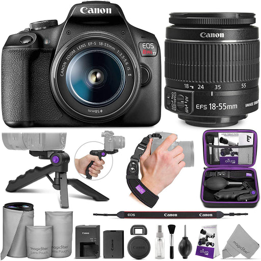 CanonINCLUDES: Canon EOS Rebel T7 EF+S 18–55mm f/3.5–5.6 IS II + Altura Photo Mini Tripod with Pistol Grip + Altura Photo Rapid Fire Wrist Strap + Altu...