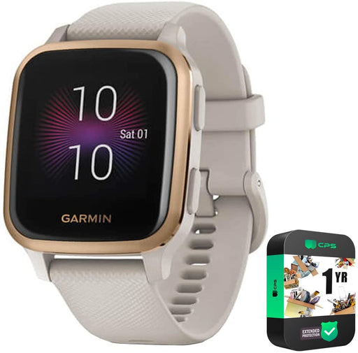 from 75.600 KDGarmin 010-02426-01 Venu SQ Music Edition - Light Sand with Rose Gold Bezel Bundle with Deco Essentials 2600mAh Portable Power Bank (Black Twist) and Deco Gear Magnetic Wireless Sport Earbuds