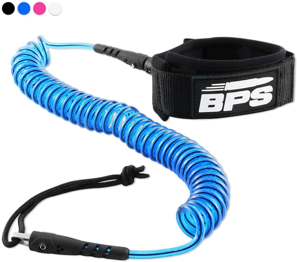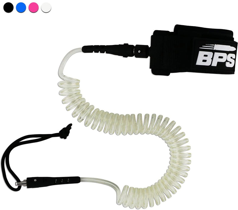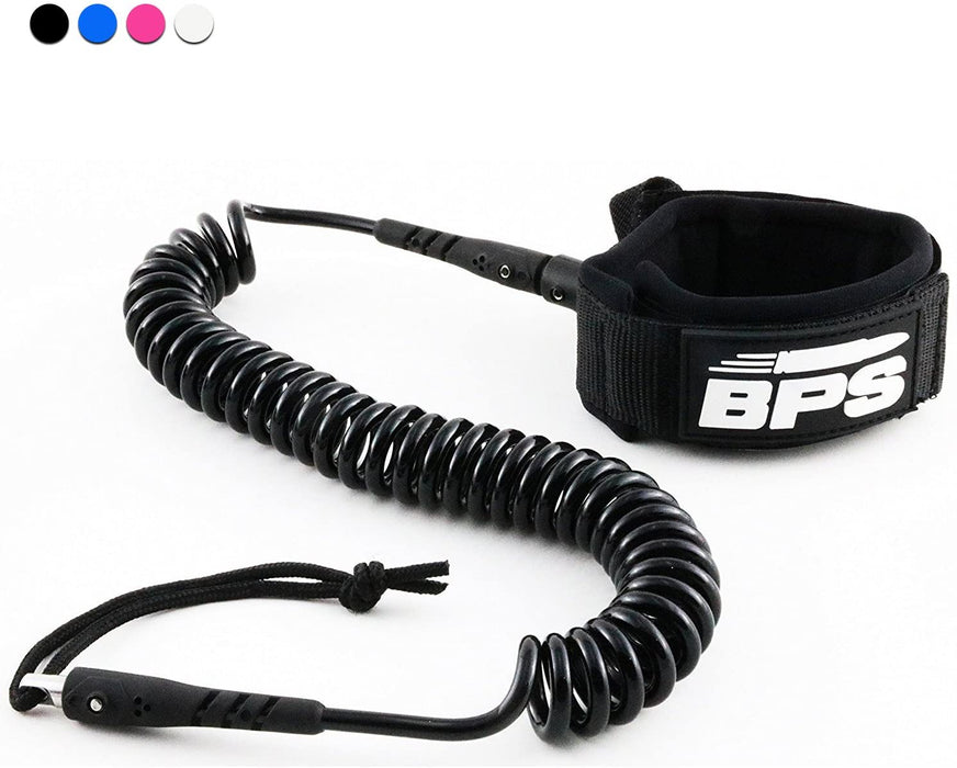 BPS 'Storm' 10ft Coiled Ultralite Premium Surf Leash SUP Surfing Leg Rope - Surfboard Neoprene Ankle Cuff (4 Colors)