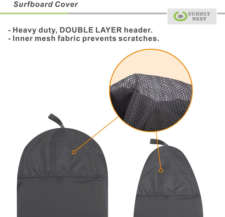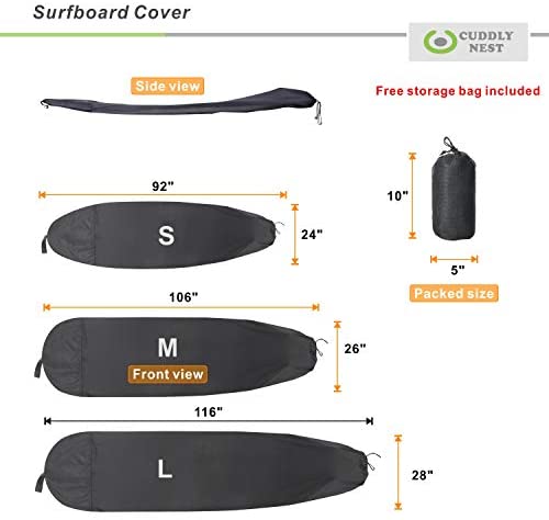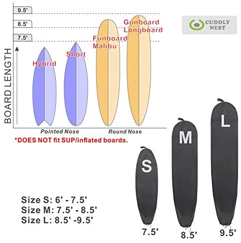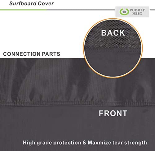• Padded nose with heavy duty 600D polyester outside and mesh fabric inside to protect your surfboard from scratches, dings, and UV rays. Great for trips to and from the beach, an extra protection inside of travel bags, or when storing your board!
