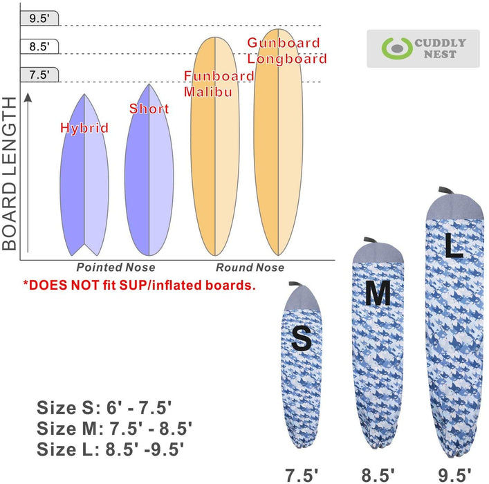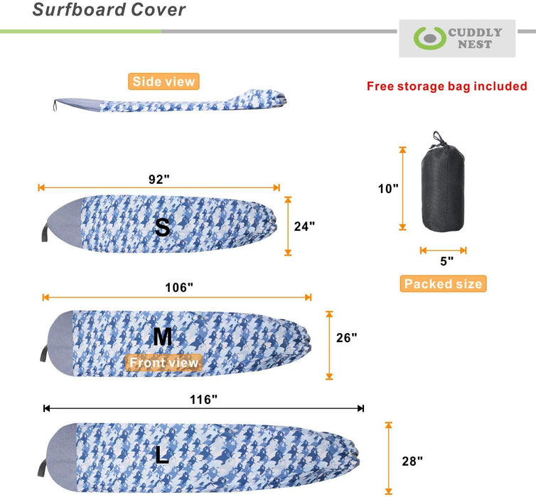 Cuddly Nest Surfboard Storage Cover, Printed Surf Board Sock Cover for Shortboard