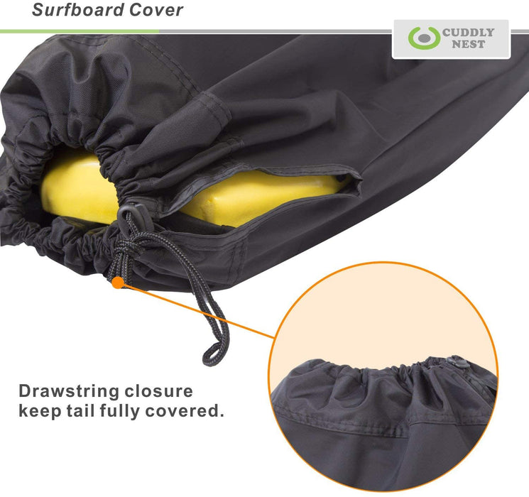 • Drawstring closure with polyester fabric is more durable, and keeps the surfboard tail fully covered, don’t need to remove fins.