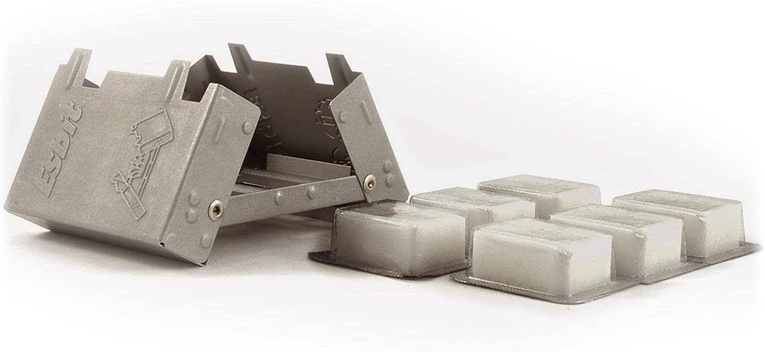 - Includes 6 smokeless, Esbit 14 g solid fuel tablets; Each tablet burns approximately 12 minutes; One tablet boils 500 ml of water in about 8 minutes