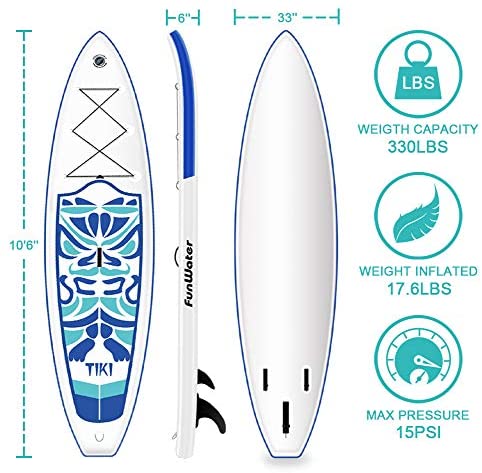 - 【New ultra light construction dual layer PVC 】35% lighter than comparable models. Inflated 10’6" long 33" wide 6" thick, weight 17.6 lbs, maximum capacity is up to 330 lbs, stable and great for all skill levels and conditions.