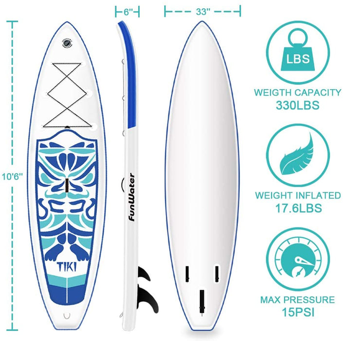 FunWater Inflatable 10'6×33"×6" Ultra-Light (17.6lbs) SUP for All Skill Levels Everything Included with Stand Up Paddle Board, Adj Paddle, Pump, ISUP Travel Backpack, Leash