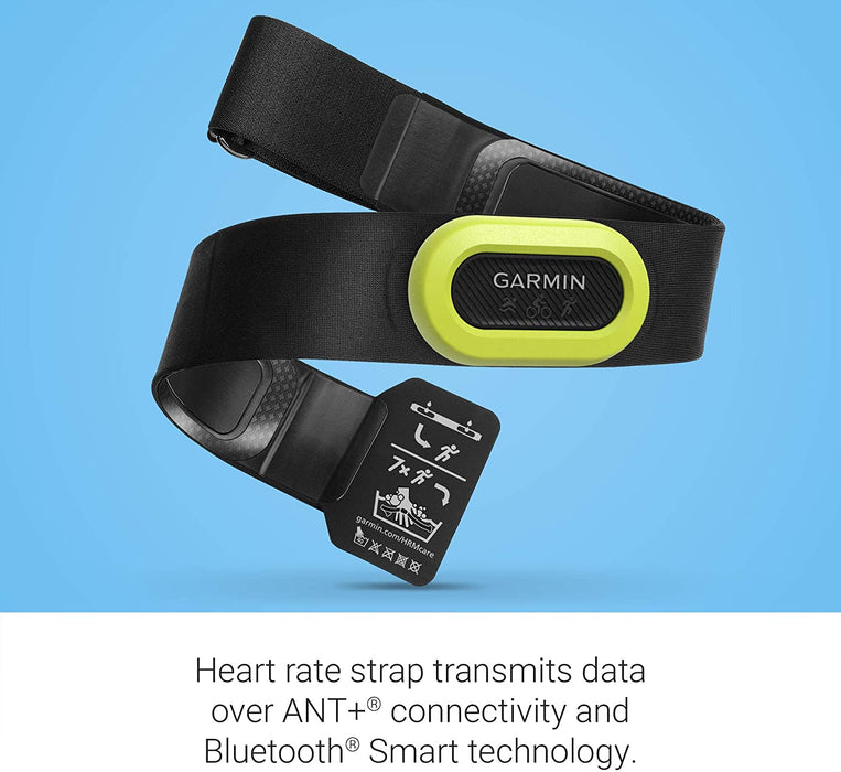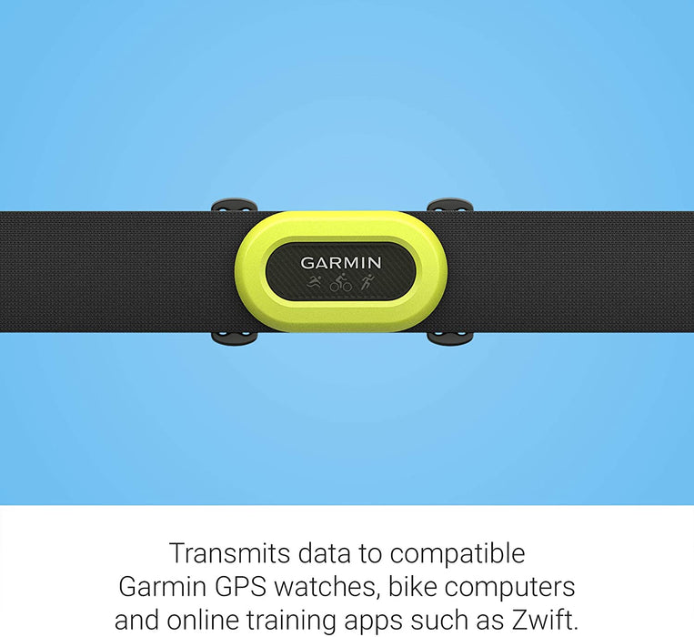 - Premium heart rate strap transmits real-time heart rate data via ANT+ technology and BLUETOOTH Low Energy technology to communicate with Garmin devices, compatible fitness equipment and online training apps, such as Zwift