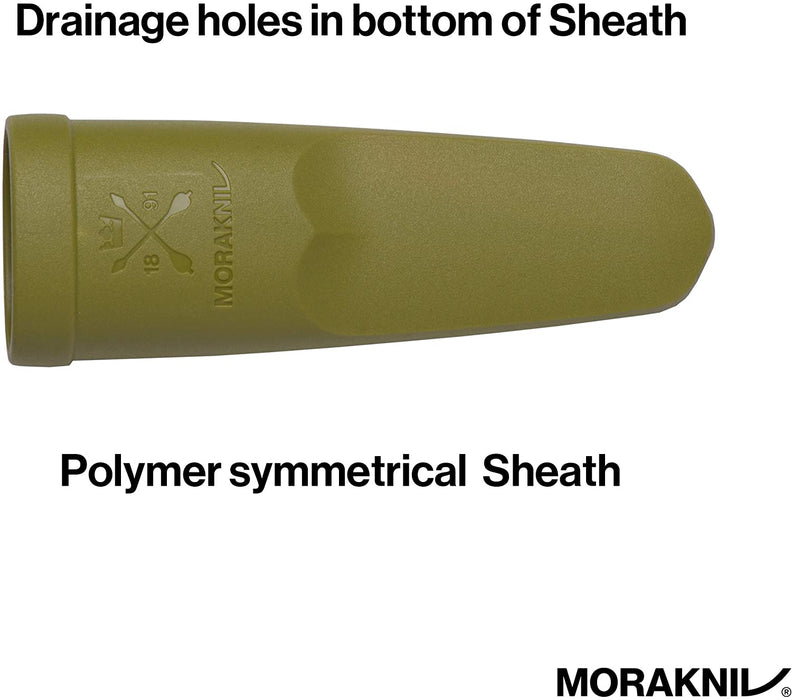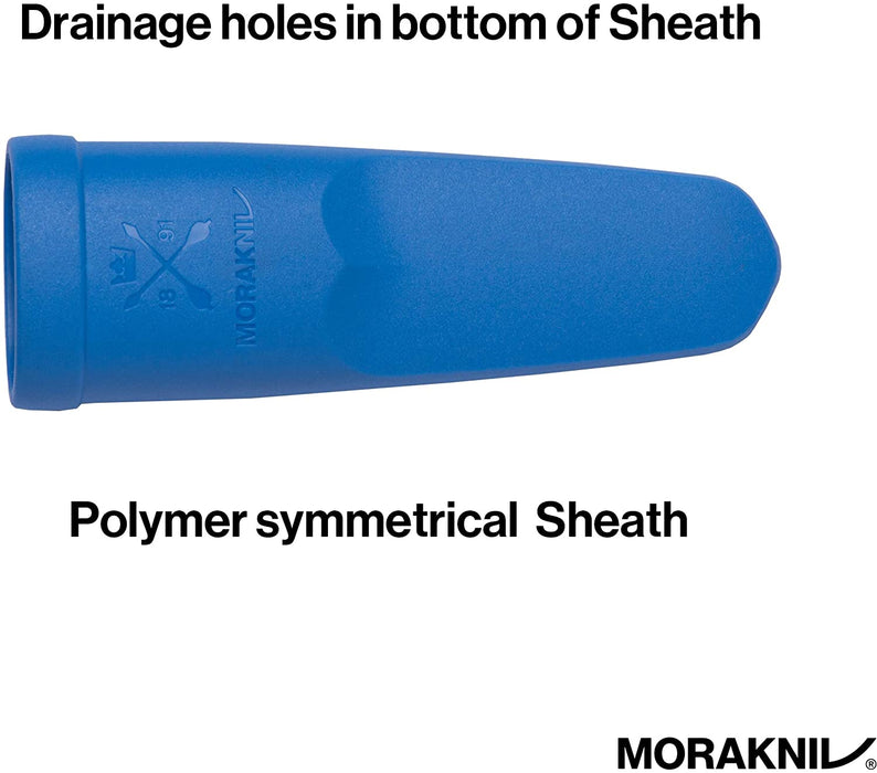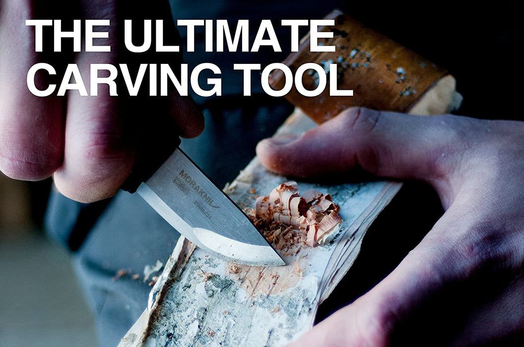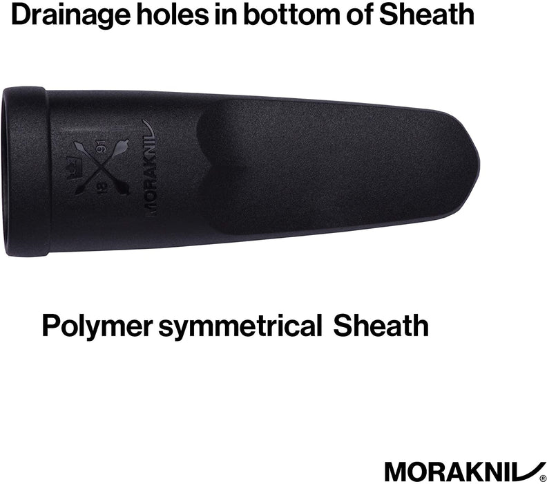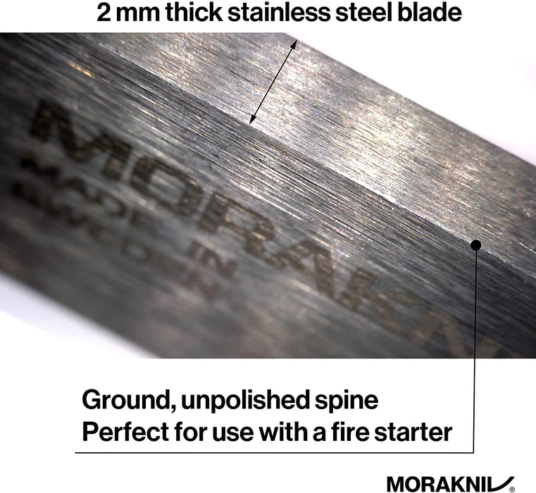 - Square-edged ground spine blade can be used as a striker with firesteel; made in Sweden