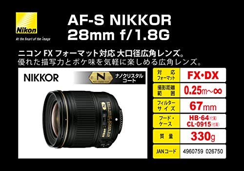 Nikon AF FX NIKKOR 28mm f/1.8G Compact Wide-angle Prime Lens with Auto Focus for Nikon DSLR Cameras