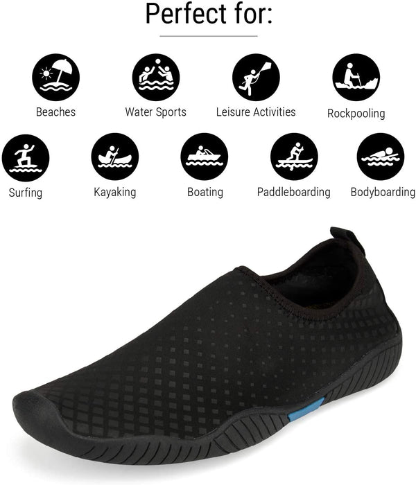 - Water shoes have a hardwearing TPR sole for a comfortable fit and help prevent slipping