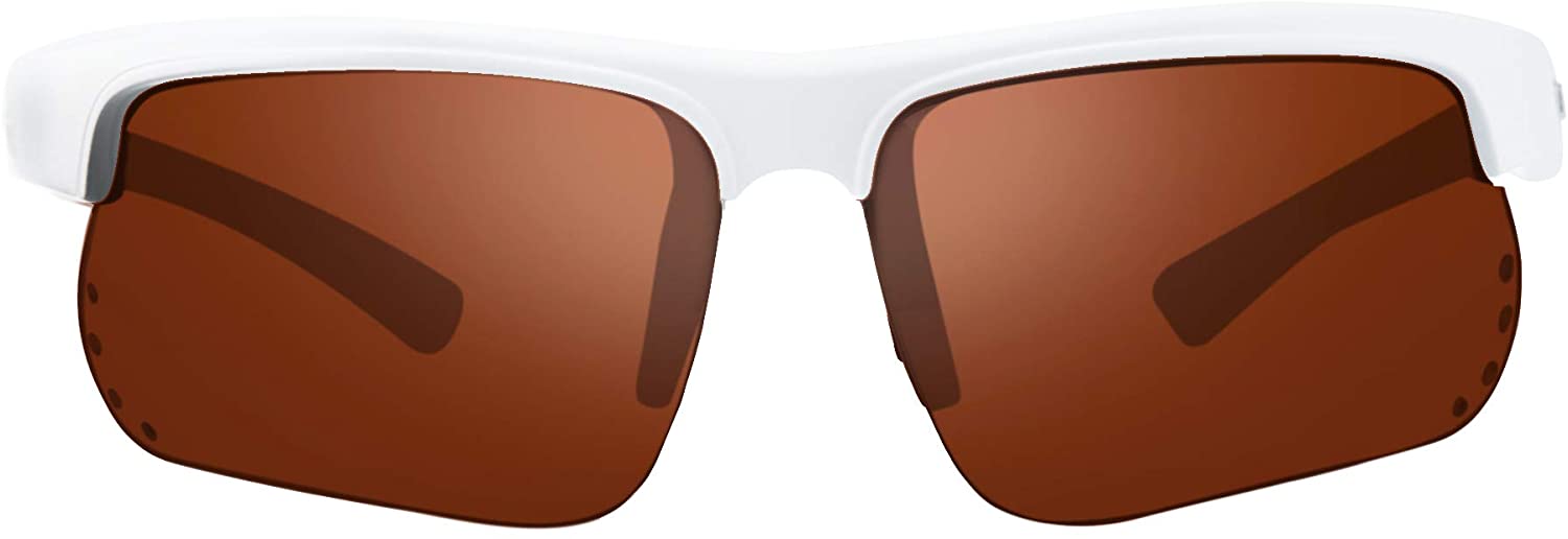 - Revo high-contrast polarized Serilium+ lenses: Lightweight, impact-resistant, glare-reducing nylon