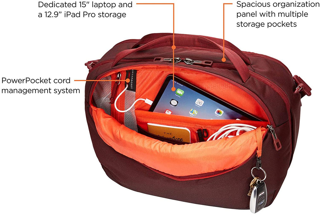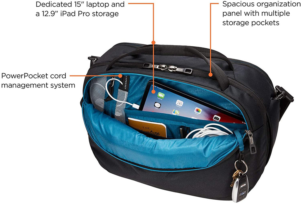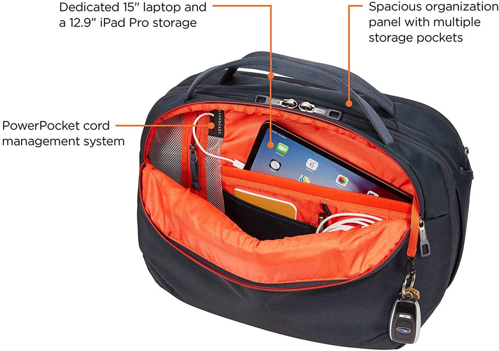 - Dedicated storage for a 15" laptop and a 12. 9" tablet