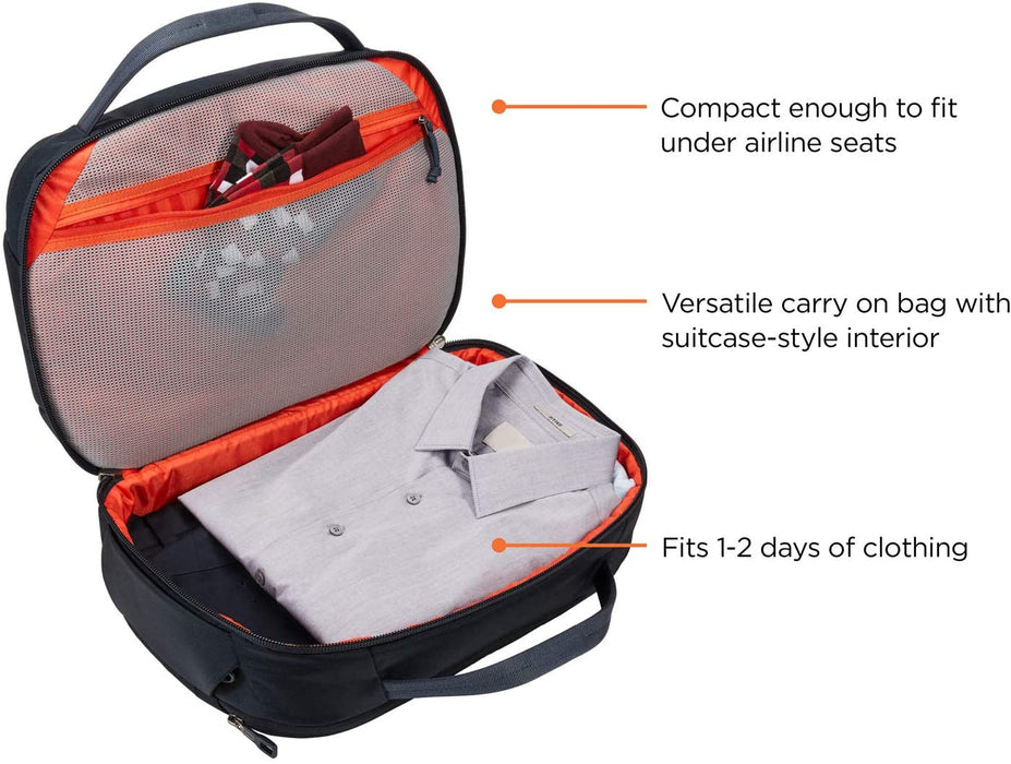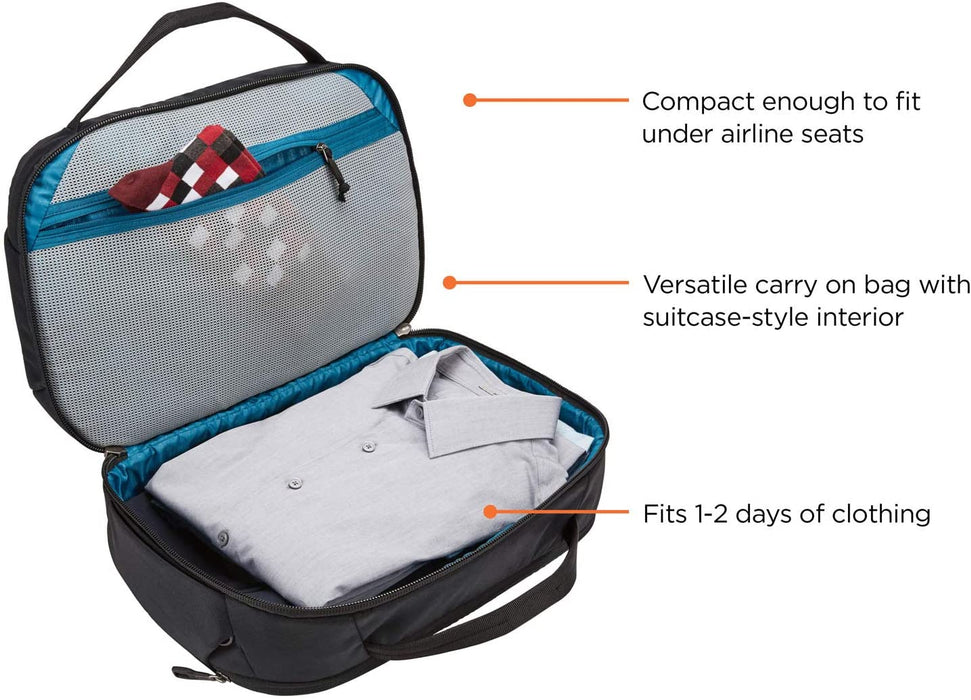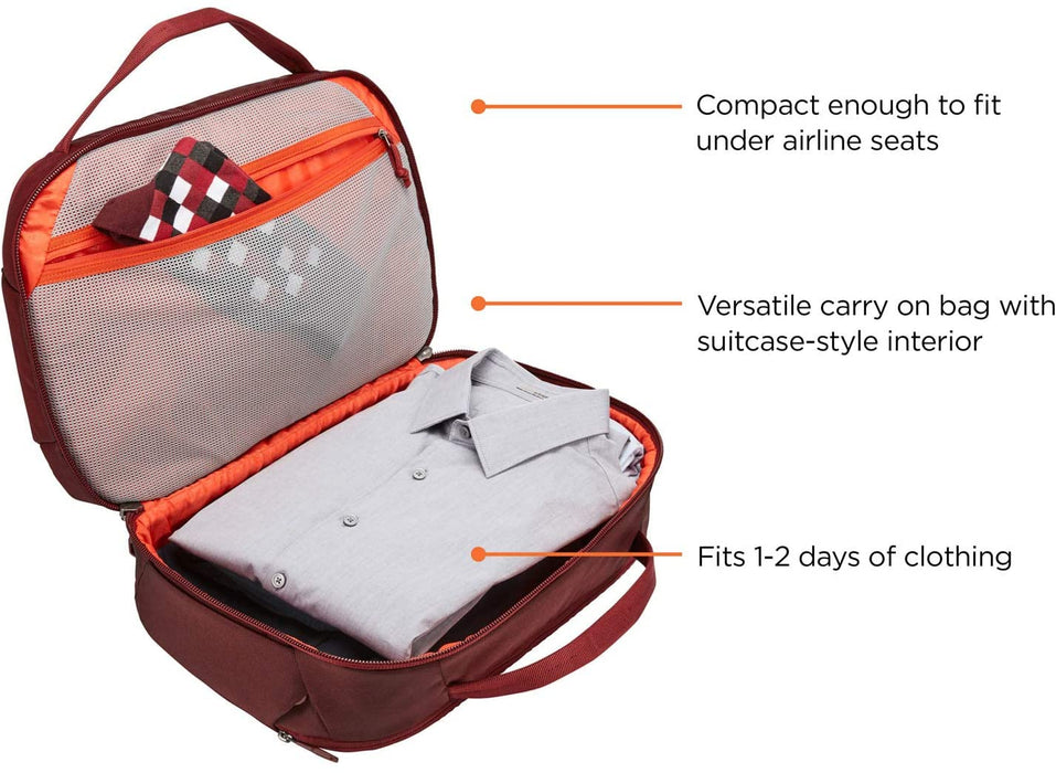 - Fits 1-2 days of the clothing in the suitcase style main compartment