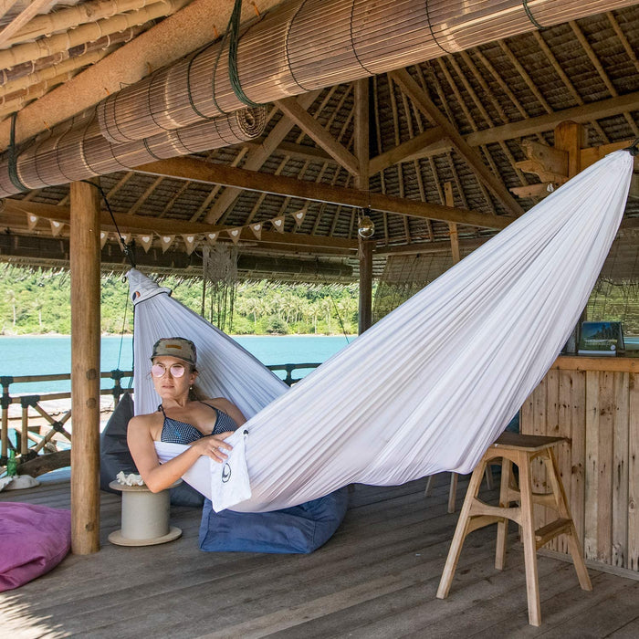 • FAST, INTUITIVE, AND MODULAR SWING - Endless knotting in order to relax? No thanks! With the patented and versatile Express-Settings Bag, you will hang within a minute! Thanks to our modular approach to product design, you will always be ahead of the game and have the right set-up in place, whether it is hot and sunny or raining and freezing. Customize your hammock tent with our ultralight attachments, tarps, mosquito nets, hammock sleeping bags, etc.