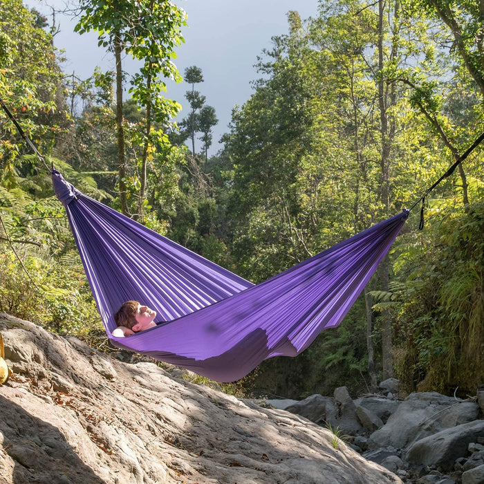 Ticket to the Moon Single/Compact Fair Trade & Handmade Lightweight Hammock for Traveling, Camping, and Everyday Use, Only 480g, Parachute Silk Nylon, Set-Up < 1 min.
