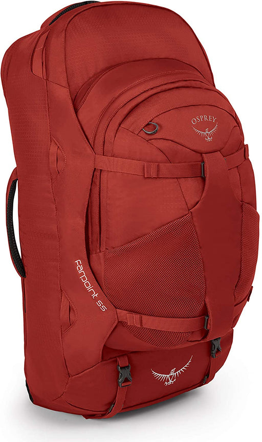 Large, lockable U-zip duffel-style access to main compartment - 55L total volume Detachable daypack with designated laptop and tablet sleeve and s...